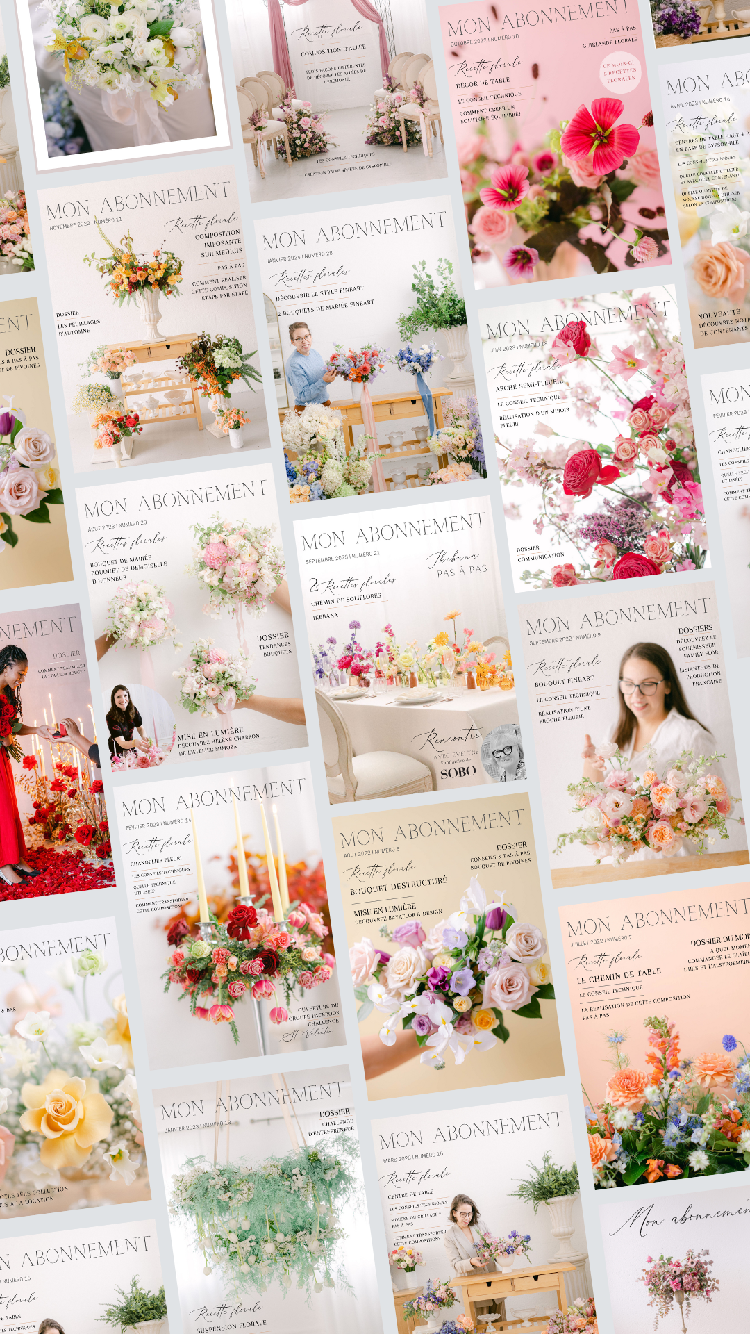- 1 nouveau numéro mensuel avec le détails et de nombreux conseils pour la réalisation de vos compositions florales (végétaux utilisés, tutoriel pas à pas et tarification).