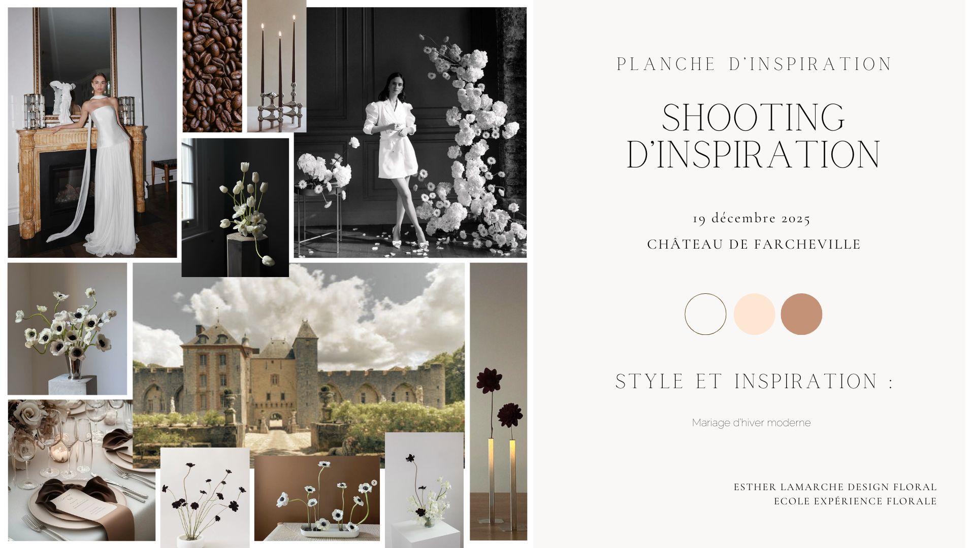 - 9h/17h (horaire à confirmer selon la logistique de l'évènement) : Installation du décor floral du shooting au Château de Farcheville.