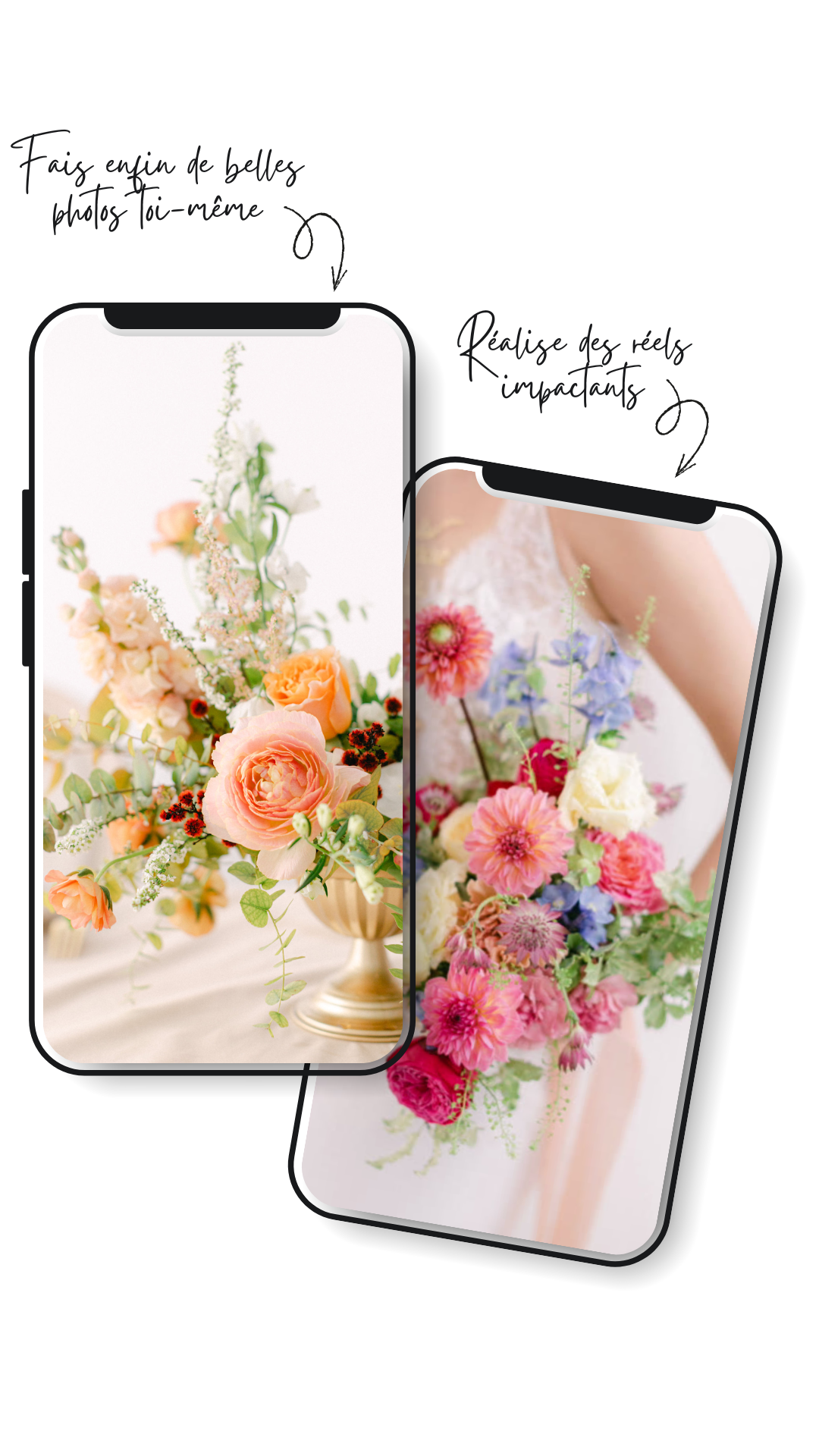 Ce module est conçu pour toi, designer floral ou fleuriste de mariage, qui souhaites gagner en autonomie et mettre en valeur tes créations sans dépendre d’un photographe à chaque fois.